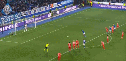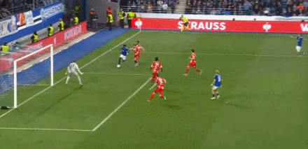 第35分钟,恩西索传中,瓦塔拉抢点头槌破门,斯特拉斯堡2-0
